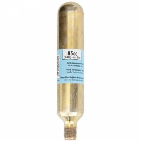 - Cartouche de CO² en acier moulé avec obturateur soudé.