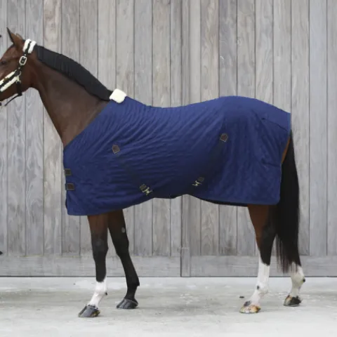 Cette chemise d’été est composée d’un tissu Quick Dry qui absorbe instantanément la transpiration et la transporte vers l’extérieur de la couverture pour qu’elle puisse s’évaporer. Le mouton synthétique protège le garrot des frottements et de toute pression. Le motif diamant matelassé du tissu extérieur en polyester 600D haute densité rend plus difficile pour le cheval de mordre et de déchirer la chemise. Elle dispose d’une double fermeture au poitrail et de deux sur-sangles croisées renforcées à leurs extrémités avec du similicuir. La courroie de queue est amovible et recouverte par du plastique, permettant un entretien aisé. La chemise toute entière est lavable en machine à 30° (pas de sèche-linge).