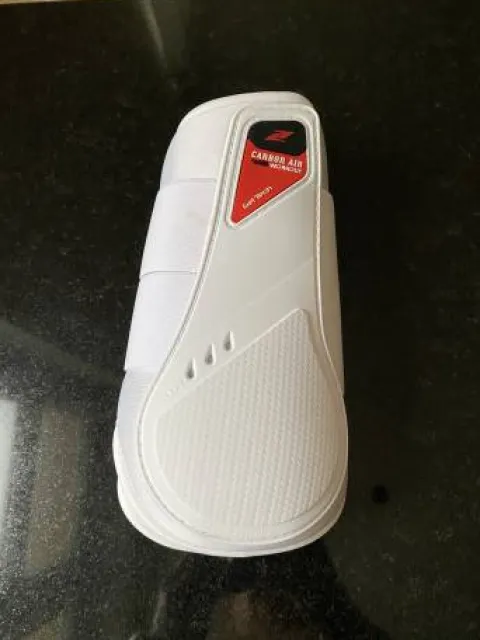 Guêtres de dressage Zandona modèle Carbon Air Workout neuves, une paire pour antérieurs et une paire pour postérieurs. Une guêtre postérieure enfilée une fois sue le cheval a gardé une légère trace à l’intérieur.