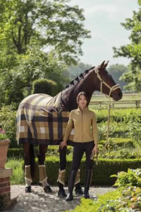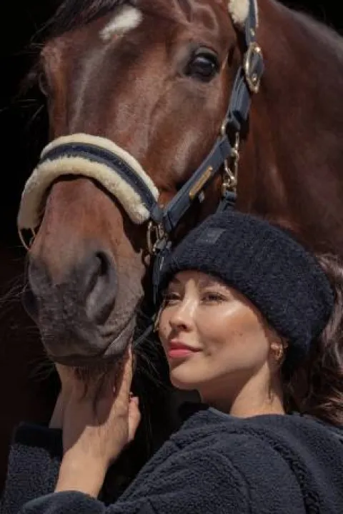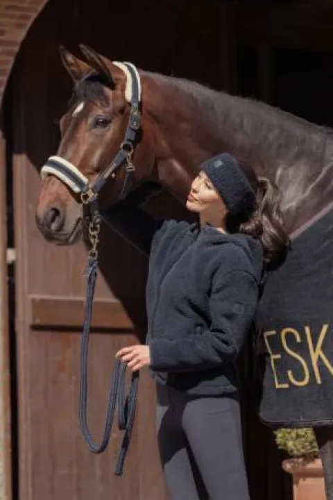 Cet élégant licol, conçu par Eskadron, allie sophistication et fonctionnalité grâce à sa construction en similicuir premium. Le rembourrage en fausse fourrure enveloppe délicatement la muserolle et la têtière, offrant un confort optimal pour votre cheval. Les boucles de fermeture bilatérales permettent un ajustement précis, tandis que la sous-gorge réglable assure une tenue sécurisée. Les détails raffinés, tels que la bouclerie dorée et les cristaux scintillants ornant la muserolle, ajoutent une touche de luxe, sans oublier la signature Eskadron gravée sur le côté.