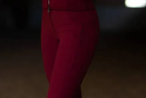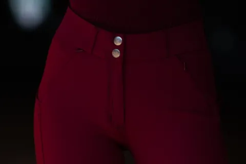 - Culotte d’équitation rouge foncé classique avec grip aux genoux et logo Equestrian Stockholm.