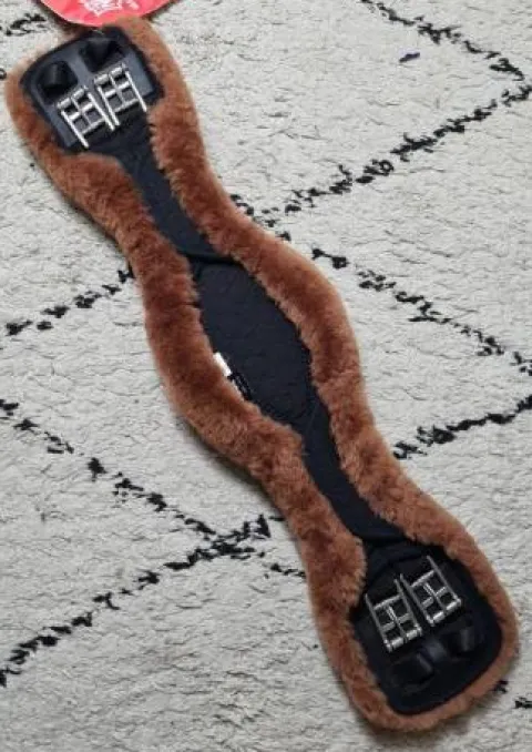- Pour les chevaux avec passage de sangle marqué et situé suffisamment loin du coude. La sangle est découpée à l‘avant comme à l‘arrière au niveau du coude.