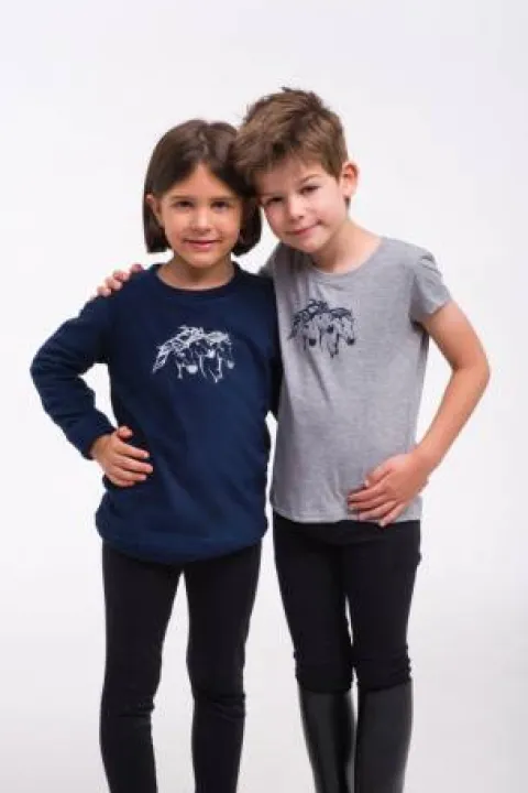 Ce t-shirt pour enfants est idéal pour les jeunes cavaliers qui recherchent à la fois confort et esthétique. Confectionné dans un tissu doux et extensible, il s’adapte parfaitement aux mouvements, que ce soit lors des séances d’équitation ou pour un usage quotidien.