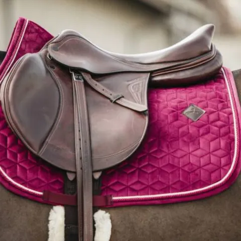 Le tapis de selle Saddle Pad Velvet très élégant avec son effet velours et son passepoil à double torsion. Ce tapis est conçu pour le saut et offre un excellent amorti entre le dos du cheval et la selle, tout en protégeant contre les frottements. Le tapis de selle n’a pas de sangle gênante pour attacher la selle, seulement une sangle en nylon pour la sangle. Le tapis de selle comporte un logo en cuir subtil, tout en offrant suffisamment d’espace pour broder le tapis de selle si nécessaire. Il est lavable en machine à 30°, pas de sèche-linge.