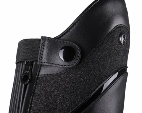 Les bottes d’équitation Hailey Junior de la marque QHP se distinguent par leur design élégant et leurs fonctionnalités pratiques. Confectionnées dans un cuir verni orné de paillettes, elles apportent une touche de glamour tout en offrant un confort optimal lors de vos séances d’équitation. Grâce à leur fermeture éclair à l’arrière, enfiler ces bottes devient un jeu d’enfant, tandis que le laçage élastique garantit une liberté de mouvement appréciable pour la cheville.