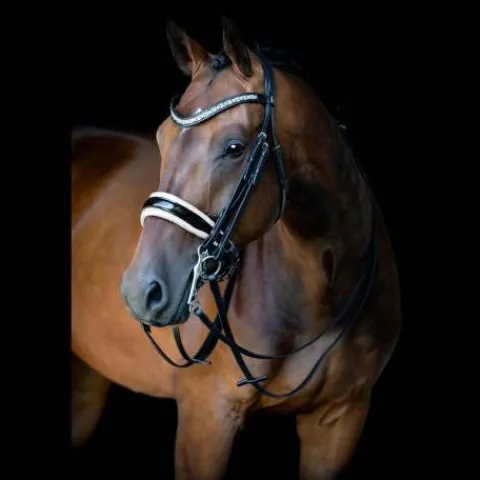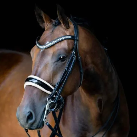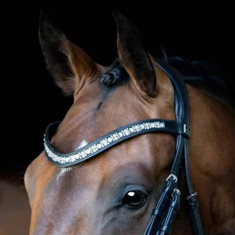 - Le frontal fait parti des designs uniques SD DESIGN, utilisés sur plusieurs de leurs bridons. Il est composé de différentes tailles de cristaux autrichiens Stellux, qui brillent de mille feux.