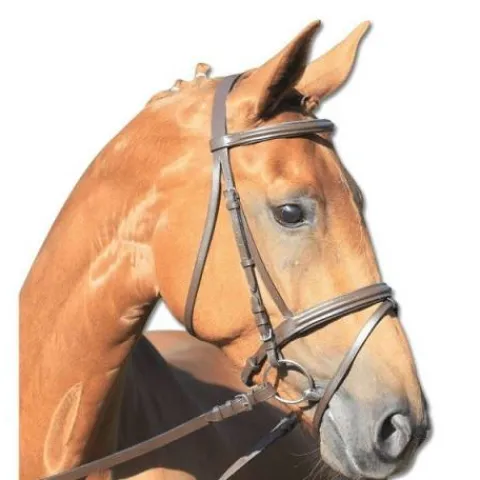 - Frontal et muserolle sont doublés de cuir doux et la bouclerie est en fer nickelé