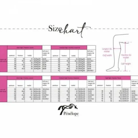Conseil de taille : Un tableau des tailles en fonction de la pointure, la taille de mollet et la hauteur de tige est disponible pour choisir la botte qui vous conviendra le mieux.