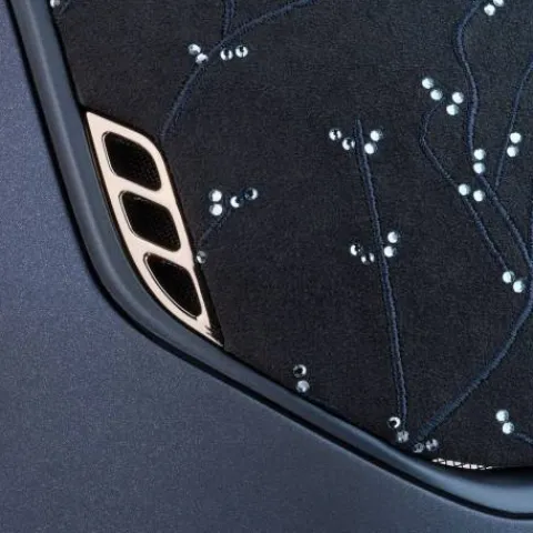 Casque Miss Shadowmatt bleu avec crystal Leaf bleu 5 swarovskis liseré bleu mat et blason chrome noir