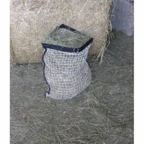 Filet à foin très pratique et facile à remplir grâce à sa fermeture par bande auto-agrippante renforcée.