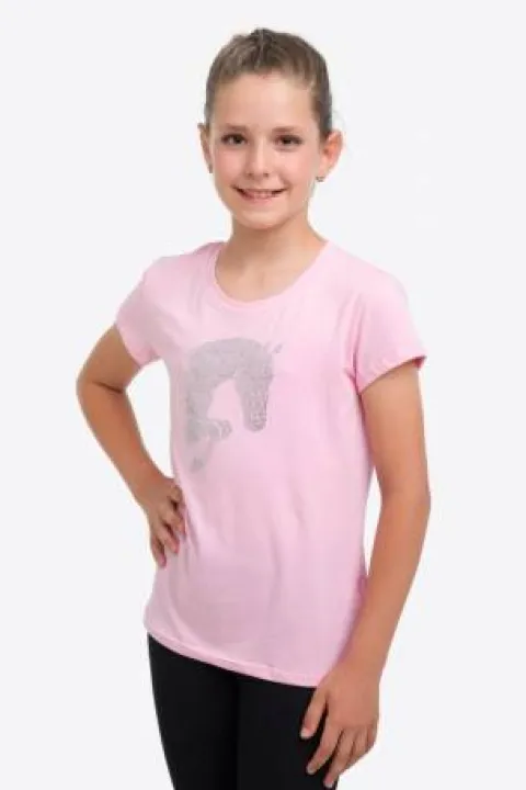 Ce t-shirt doux à base de coton offre une silhouette élégante aux jeunes cavaliers et cavalières. Sa composition en fibres naturelles garantit un confort optimal tout en conservant sa forme. Avec un design ras du cou et des mancherons, il est orné d’un motif de cheval en saut, agrémenté de strass, qui met en avant la passion pour l’équitation. Ce haut est idéal à porter après une journée active dans la carrière.