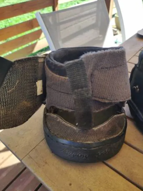 Utilisé 2 mois bon état, (scratchs, semelles …). Tiennent très bien au pied, confortable pour le cheval