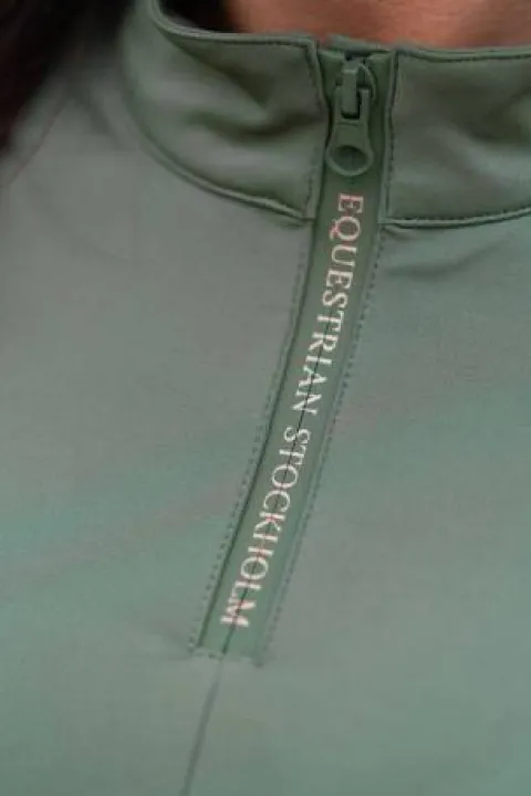 Haut Trinity exclusif et luxueux dans un beau design vert. Le haut est confectionné dans un mélange de polyester recyclé respirant avec une coupe ajustée. Orné d’un logo ES en or rose dans le dos, sur le bras gauche et d’un logo plus petit sur la fermeture éclair à l’avant.
