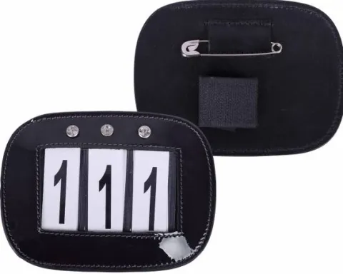 Porte numéros en cuir verni orné de strass, pratique et élégant pour vos compétitions