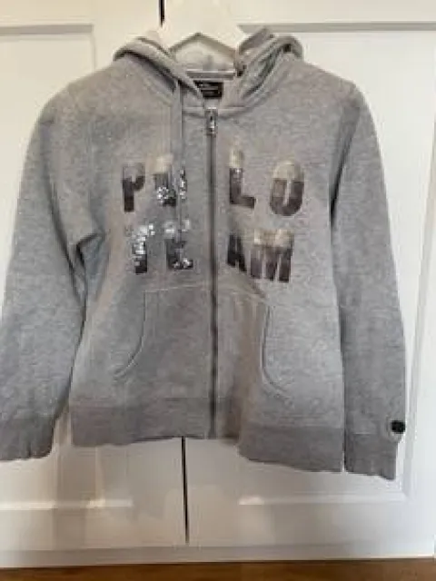 Pull gris clair avec fermeture éclair et capuche de la marque HV Polo.