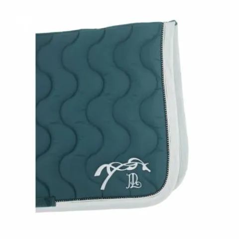 Ce tapis est un véritable bijou d’élégance équestre, avec un matelassage en forme de vague qui assure un soutien optimal, un galon délicatement tressé et un liseré orné de strass scintillants, captant la lumière à chaque mouvement. La ligne de dos dégarrottée permet un ajustement parfait, tandis que la broderie Pénélope ajoute une note de sophistication.