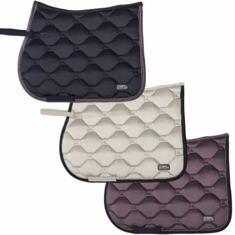 Le tapis de selle KlBlair de chez Kingsland est très beau avec son tissu extérieur en satin et, son écusson dans le coin extérieur.