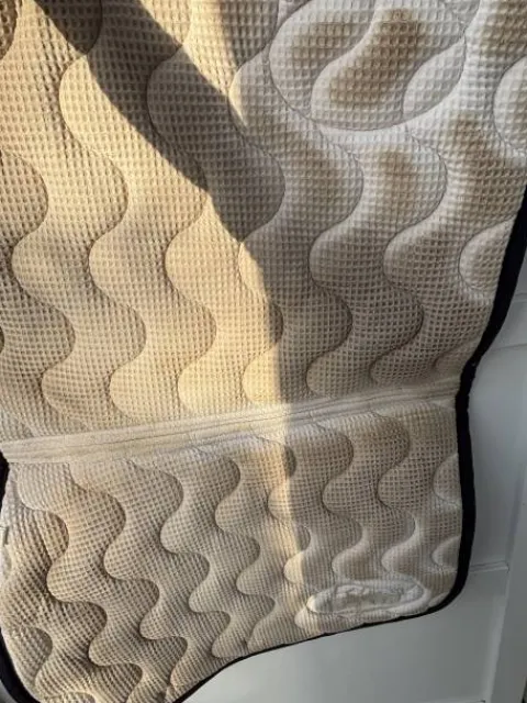 Tapis Jump’in bleu marine avec liseré et surpiqûres rose gold.