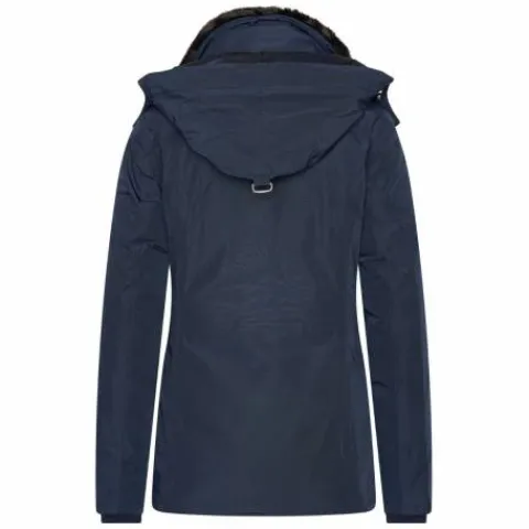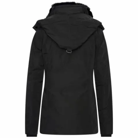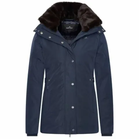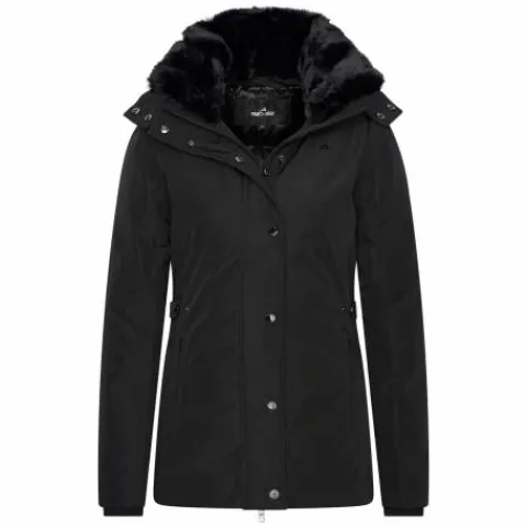 - La veste a une fausse fourrure amovible à l’intérieur du col et de la capuche.