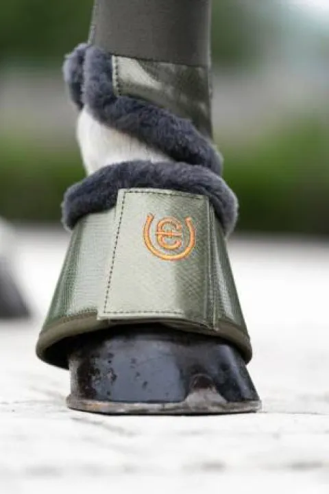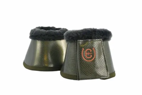- Conçu dans une élégante couleur verte avec des détails élégants en or rose. Fausse fourrure grise foncé super douce à l’intérieur contre la jambe du cheval.