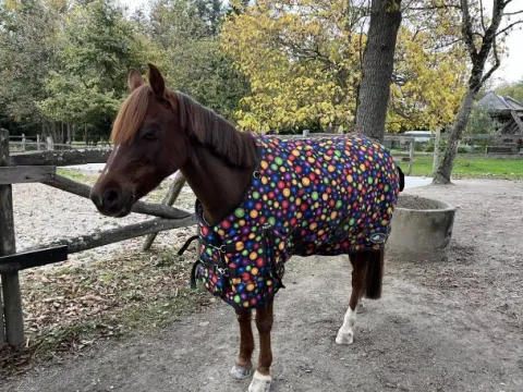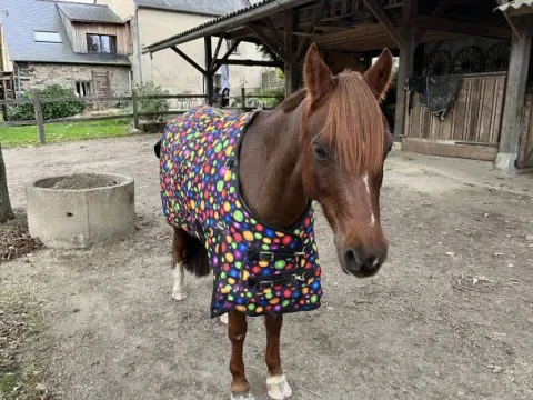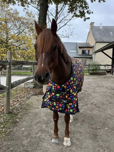 Vends couverture d’écurie Performance 300g, portée une seule fois, en excellent état (quasi neuve). Je la vends car la taille ne convient pas à mon poney.