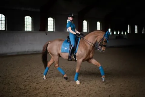 Bandes de polo de haute qualité dans une élégante couleur bleue. Décorées de détails en satin bleu et d’un badge Equestrian Stockholm en argent. A associer au tapis de selle et au bonnet d’oreille de la collection Amalfi pour compléter un look glamour.