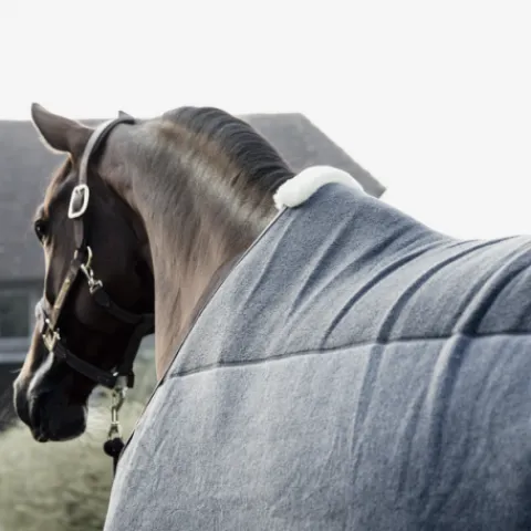 La Fleece Rug Heavy offre la sensation et l’aspect d’une couverture en laine sans tous les inconvénients que la laine peut avoir. La couverture est idéalement utilisée après l’entrainement ou après la douche par temps froid. Cette couverture en molleton épais, absorbe la sueur ou l’eau et veille à ce que votre cheval ne se refroidisse pas. Elle est dotée de deux sur-sangles élastiques avec des attaches détachables à l’intérieur, de sorte qu’elle puisse aussi être utilisée durant les compétitions. Le liseré en cuir, le mouton artificiel au garrot et les élégantes fermetures donnent un aspect très chic à cette couverture. Elle est lavable en machine à 30 °, pas de sèche-linge.