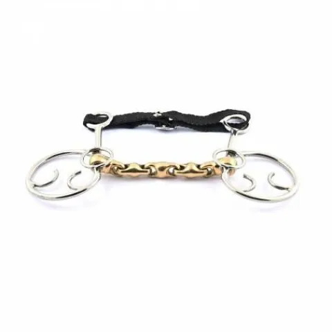 Le Mors Goyo Aga à boules est l’embouchure idéale pour réduire l’effet de pression sur votre cheval. Sa composition en German Silver, un alliage de cuivre, de zinc et de nickel, en fait un mors à la fois solide et décontractant. L’effet abaisseur du Goyo Aga varie en fonction de la position de la rêne sur l’anneau et du serrage de la gourmette. Le canon à boules offre un confort optimal pour votre cheval.