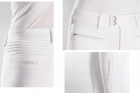 Ce pantalon d’équitation Adèle est fabriqué dans du textile souple et très confortable. La coupe spécifique a été spécialement étudiée et adaptée pour que le pantalon Adèle soit toujours parfaitement en place même lorsque la cavalière est en mouvement.