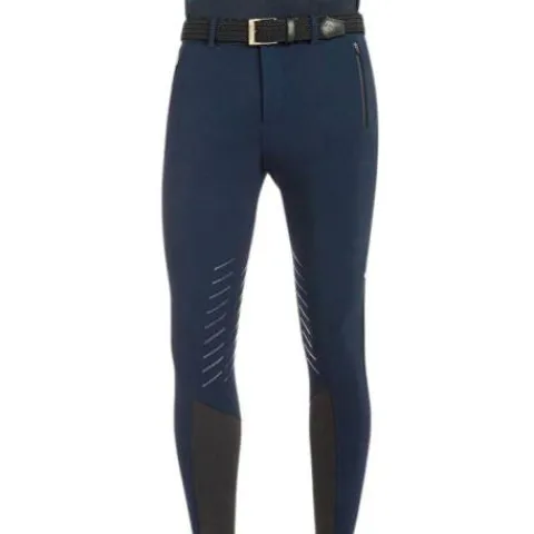Le Pantalon Equiline Homme N08474, a deux poches arrière avec une fermeture éclair, une plaque centrale en caoutchouc noir et des grips aux genoux avec un nouveau design contemporain.