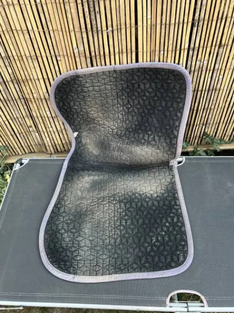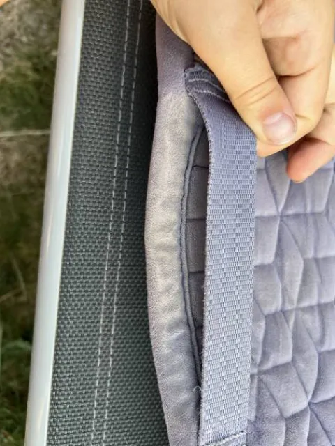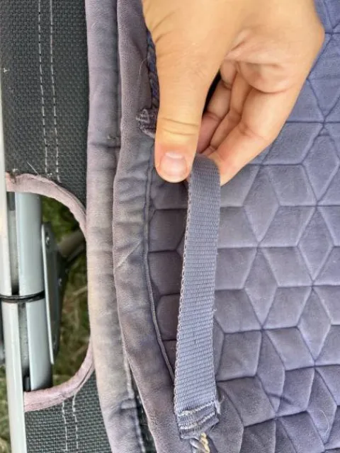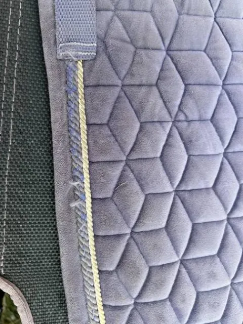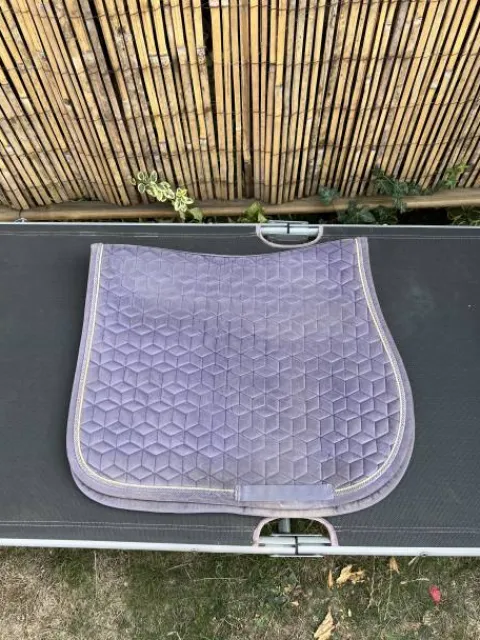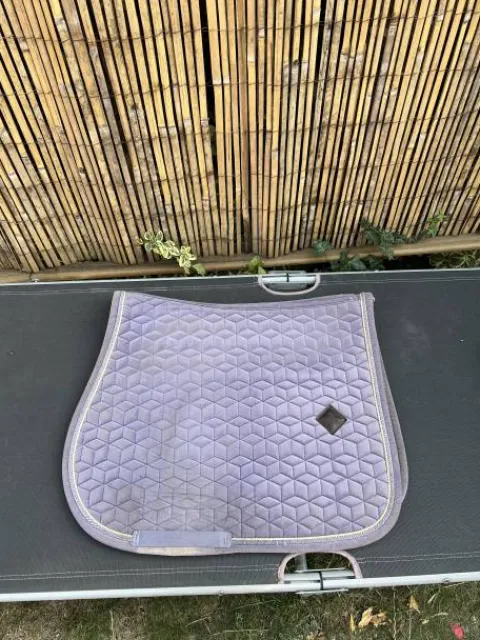 Bonjour, je vends mon tapis Kentucky Velvet mauve, il est en bon état, présente quelques signes d’usure comme un petit trou sur le dessus du tapis, mais qui n’a pas bougé depuis deux ans, donc ne va pas s’élargir et aussi le liseré est un peu abîmé. Le passage de sangles est en très bon état. Je le vends pour cause d’arrêt d’équitation