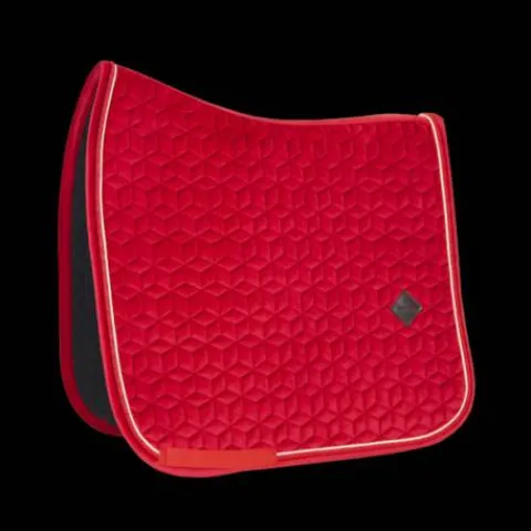 Le tapis de selle Saddle Pad Velvet très élégant avec son effet velours et son passepoil à double torsion. Ce tapis est conçu pour le saut et offre un excellent amorti entre le dos du cheval et la selle, tout en protégeant contre les frottements. Le tapis de selle n’a pas de sangle gênante pour attacher la selle, seulement une sangle en nylon pour la sangle. Le tapis de selle comporte un logo en cuir subtil, tout en offrant suffisamment d’espace pour broder le tapis de selle si nécessaire. Il est lavable en machine à 30°, pas de sèche-linge.