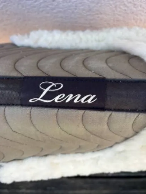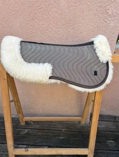 Je vends un amortisseur d’équitation marron avec bordure en mouton synthétique très doux et confortable pour le cheval.