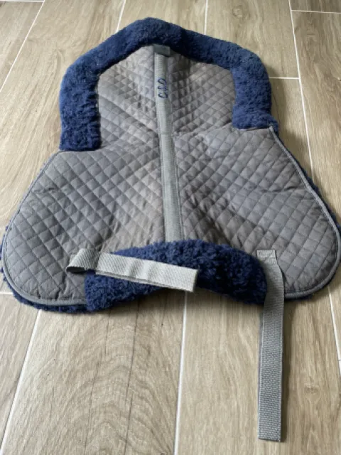 Amortisseur de dos CSO jolie couleur bleu nuit en mouton, en très bel état. Toujours stocké au sec, a servi une dizaine de fois.