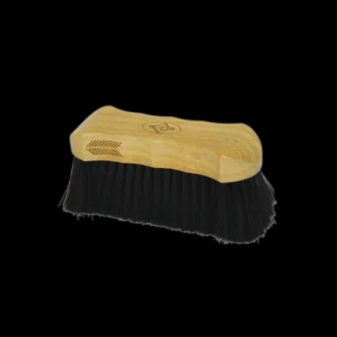Cette brosse vernie possède de longs poils bruns pour aider à enlever la saleté et les poils morts. Les poils en polypropylène sont durs, rendant cette brosse idéale pour une utilisation en hiver, lorsque le poil est plus épais, ou sur un cheval boueux. Les poils bruns au centre sont également plus doux, pour une meilleure action de la brosse. Nettoyez votre brosse en la trempant dans l’eau chaude savonneuse et soyez certain de la garder pendant longtemps. Votre cheval deviendra la star des écuries grâce à cette brosse !
