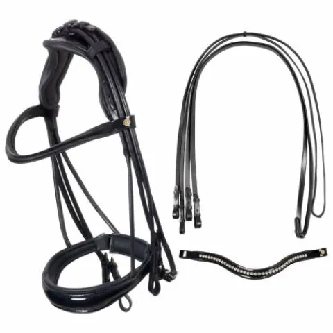 Une bride de dressage haut de gamme alliant cuir italien et confort anatomique