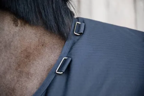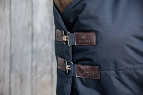 La classique imperméable n’a pas de couture à l’arrière de la couverture, ce qui évite le risque de fuite. Pour plus de chaleur, vous pouvez utiliser cette couverture avec une sous-couverture, comme la sous-couverture classic. Au cas où votre cheval aurait besoin d’une protection supplémentaire, un couvre-cou détachable peut être acheté séparément. Les finitions sont au style Kentucky : la couverture a 2 fermetures frontales en laiton et en acier inoxydable, combinées à une solide fermeture autoaggripante, deux sursangles et un cordon de queue détachable.