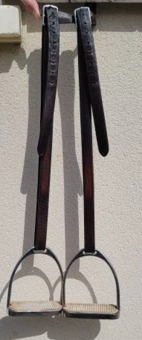 A vendre étrivières BUTET taille 135 et ses étriers. Elles ont toujours été très bien entretenus ave la savon + crème de la marque BUTET pour un entretien maximal. Possibilité de donner la crème BUTET avec Prix : 89€ l’ensemble