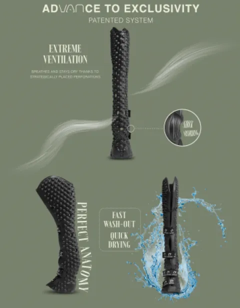 - Le nettoyage de la guêtre COMFORTRAVEL est un jeu d’enfant grâce aux caractéristiques ULTRALÉGERES, antibactériennes et imperméables de notre matériau EVA GUMFLY. Il suffit de le laver en machine ou à la main à une température maximale de 30°C et de le sécher avec une peau de chamois ou dans un endroit ventilé à température ambiante. Pour un nettoyage supplémentaire, quelques gouttes d’hypochlorite de sodium peuvent être utilisées.