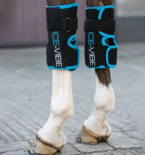 Enfin des guêtres pour genoux avec des propriétés thérapeutiques vraiment efficaces ! Les Guêtres pour Genoux Ice-Vibe® ont des guêtres de massage rechargeables contenant une technologie de pointe, offrant à la fois une thérapie par le froid et par le chaud pour l’optimisation de la santé ou la rééducation suite à blessure de votre cheval. Conçues pour s’adapter aux genoux de votre cheval tout en permettant une liberté de mouvement complète, ces guêtres sont faciles à utiliser et extrêmement efficaces. La poche contenant les billes de gel vient s’enrouler facilement autour du genou, suivie de la guêtre extérieure contenant le panneau vibrant. Les poches extensibles permettent d’insérer et de retirer facilement les panneaux, et les fermetures Velcro sécurisées empêchent la guêtre de glisser.