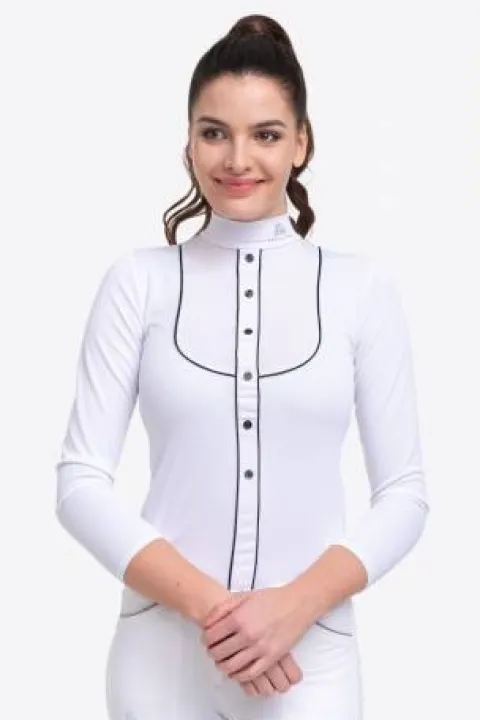 Découvrez le polo de concours GENTLE RIVER de la marque Cavalliera, un choix idéal pour allier esthétique et fonctionnalité lors de vos compétitions équestres. Conçu avec des tissus respirants et légers, ce haut de compétition est parfait pour les cavalières de tous âges.