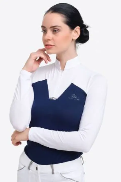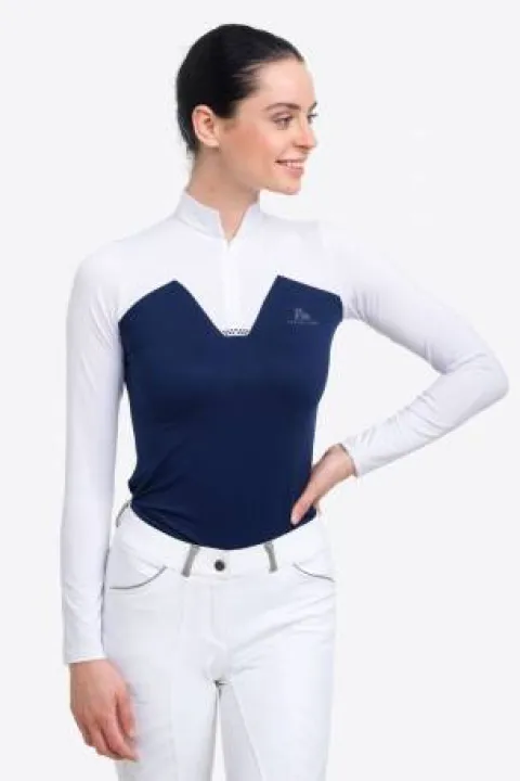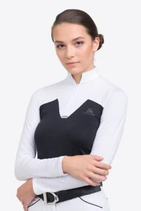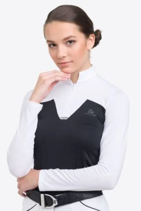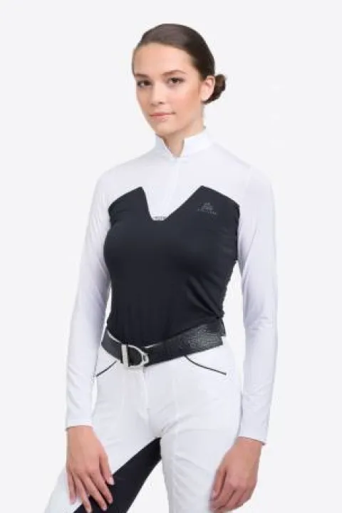 Ce polo de concours équestre, conçu par Cavalliera, est spécialement élaboré pour les femmes qui souhaitent allier féminité et performance lors de leurs activités sportives. Sa conception technique permet une évacuation efficace de l’humidité, tout en offrant un style distinctif grâce à ses détails raffinés.