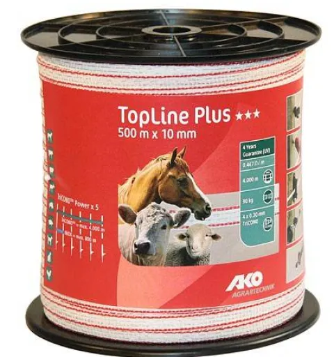 AKO TopLine Plus garantit une bonne conductivité et une extrême longévité adaptées aux clôtures moyennes à longues. Les conducteurs TriCOND confèrent à nos fils, rubans et cordelettes de la gamme TopLine Plus une conductivité 5 x supérieure en comparaison aux conducteurs usuels, permettant ainsi de réaliser des clôtures 5 x plus longues et de transporter 5 x plus de courant pour 5 x plus de sécurité