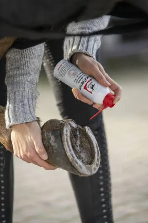 Repousse l’humidité et stoppe le processus de putréfaction. Sèche la fourchette de sorte qu’un tissu sain peut repousser. Encourage de manière active la bonne santé des sabots.