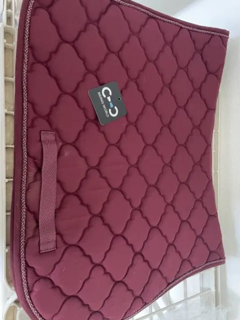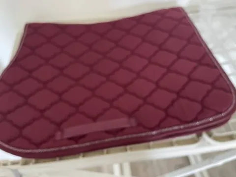 Tapis de selle bordeaux mis juste pour essayer