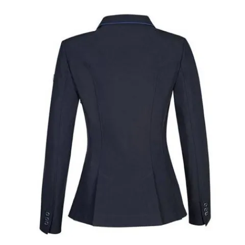 La veste de concours pour femme modèle Christine est doté d’une coupe cintrée et est réalisé à partir d’un tissu souple et légèrement extensible très agréable à porter.