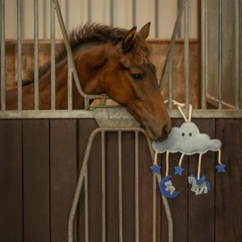 Le jouet pour cheval Novy, conçu par QHP, est idéal pour divertir les poulains, chevaux et poneys dans l’écurie. Facile à suspendre, il offre une option de jeu sûre et respectueuse de l’environnement.