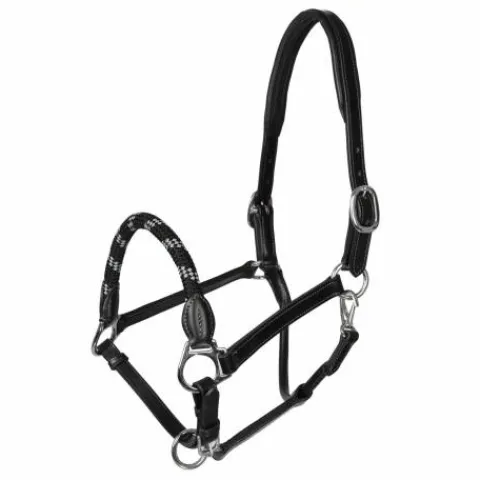 - Licol Acavallo en cuir de veau pleine fleur avec têtière rembourrée en latex.