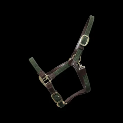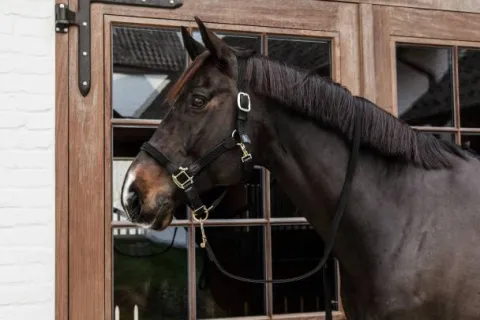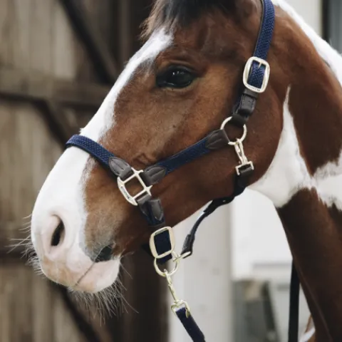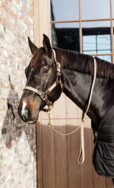 Le licol Nylon est fait de similicuir (100% respectueux des animaux). Ce cuir est recouvert de nylon tressé. Il n’absorbe ni l’eau ni la saleté, ne casse pas et ne change pas de couleur. Il est plus souple que le cuir véritable et donc beaucoup plus agréable à utiliser. Il peut être ajusté à la muserolle et à la têtière. Les ardillons des boucles peuvent pénétrer partout dans le nylon tressé et permettent donc un ajustement parfait. Toutes les fermetures sont de couleur or et sont donc parfaitement assorties à nos longes.