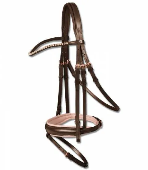 - Montants de muserolle et têtière doublés doux.